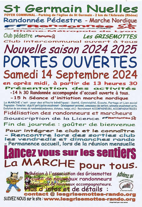 L'Association des Randonneurs Marcheurs Beaujolais Lyonnais, les GRISEMOTTES sera heureux de vous présenter ses activités et espère vous convaincre de les rejoindre afin, de grossir les rangs du club et d'offrir toujours de nouvelles randonnées grâce aux initiatives proposées par les membres.