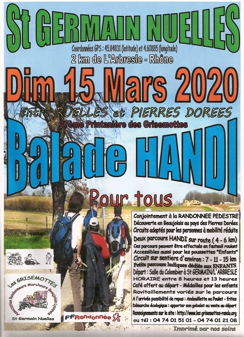 Départ : Salle du colombier à Saint Germain sur l'Arbresle, commune de Saint Germain Nuelles entre 8 et 13 heures.