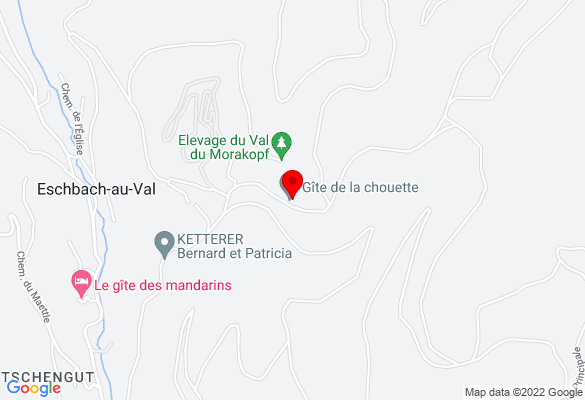 Située au pied du Petit Ballon à Eschbach au Val (vallée de Munster) le Siège de l'Association ainsi que son Gîte de séjour se trouvent dans une clairière paisible, havre de paix naturel et convivial, au lieu-dit "Geisbach".
